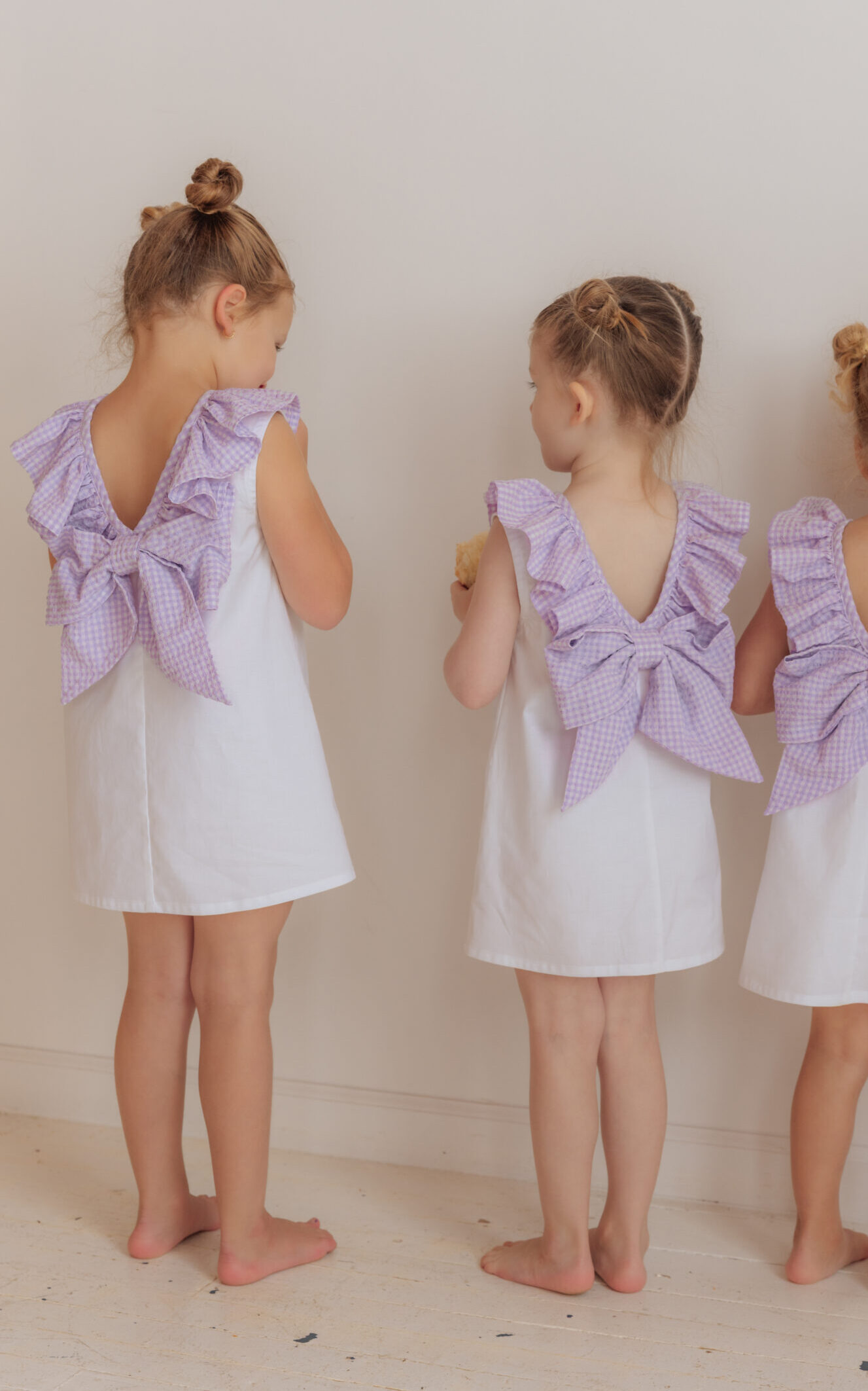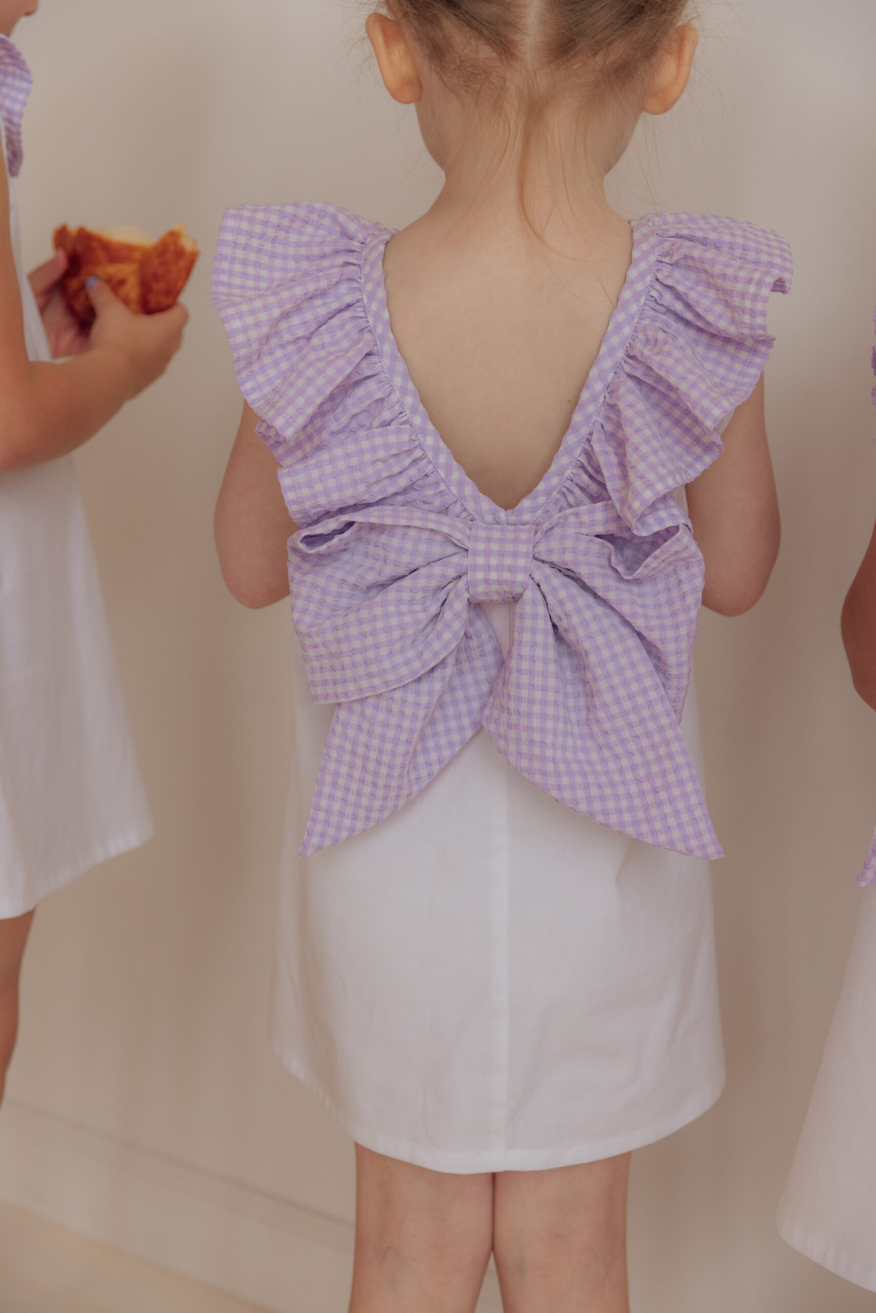 Lilac Pop features a crisp white base with a pop of playful lilac ruffles and bow.